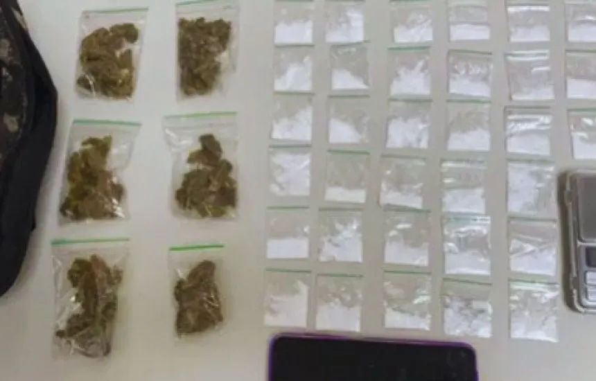 Na revista encontrada, a mochila do homem continha 33 papelotes de cocaína, seis porções de maconha, uma balança de precisão e um telefone celular da marca Samsung.